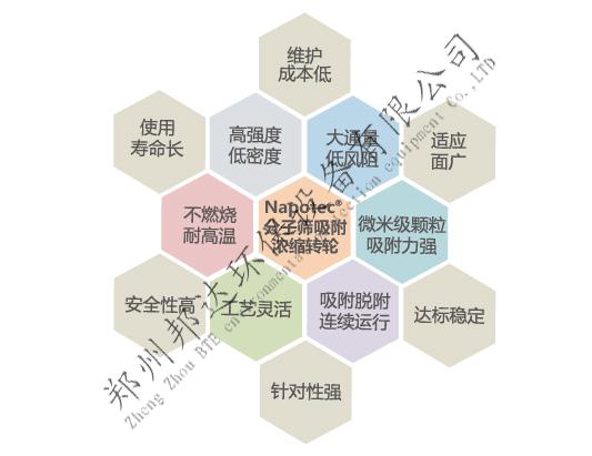 1、高吸、脫附效率,使原本高風(fēng)量、低濃度的VOCs廢氣,轉(zhuǎn)換成低風(fēng)量、高濃度的廢氣,降低后端終處理設(shè)備的成本。